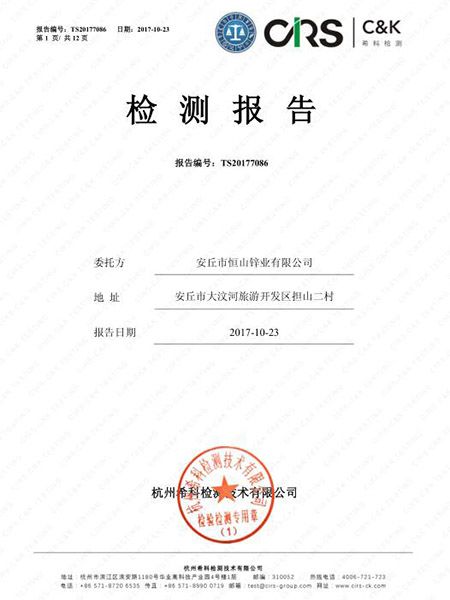 Anqiu Mt. Hengshan Zinc Industry Co., Ltd. Address: Danshan Industrial Park, Dawenhe Tourism Development Zone, Anqiu City, Weifang City, Shandong Province